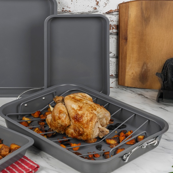 Featuring a food-safe non-stick surface, this roasting and baking tray set ensures effortless food release and easy cleanup