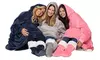 Stay warm and cozy with this hooded blanket featuring an extra wide hood, large pocket, and a comforting feeling like a big hug