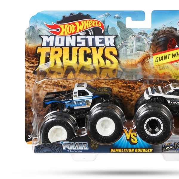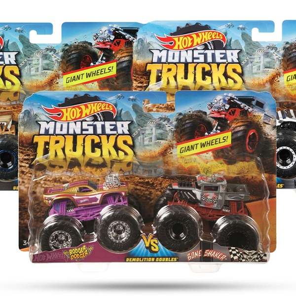 - Collection of rivals in a two-pack of 1:64 scale Hot Wheels monster trucks