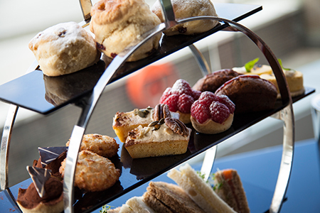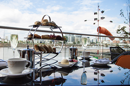 Diners can take afternoon tea in style: on a five-star hotel balcony overlooking the Thames Southbank and Battersea Heliport. The tea (usually £30 per person) contains a selection of sandwiches, traditional scones with jam, home-made pastries to satiate that sweet tooth, a choice of flavoured Cammelia teas, and to add a little fizz to the occasion: a glass of Champagne.