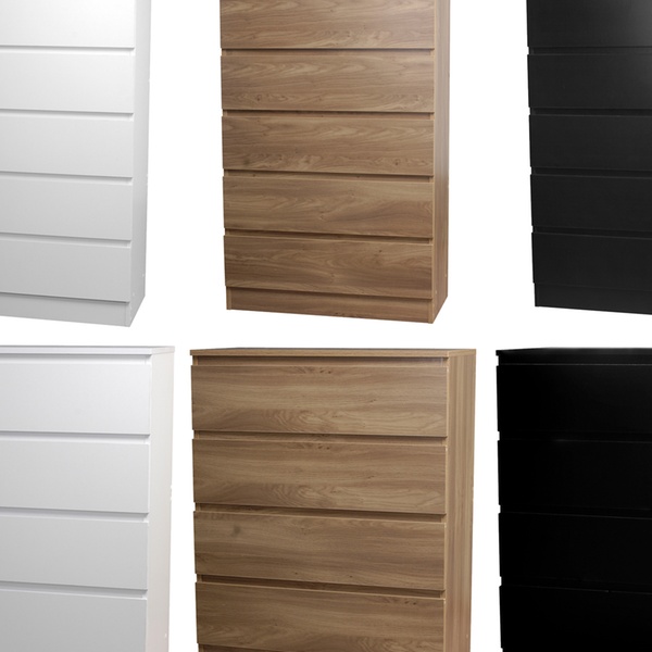 - Five drawer: 108.5cm (H) x 70cm (W) x 35cm (D)