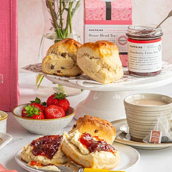 Indulge in Huffkins Afternoon Tea Gift Set, the perfect way to enjoy a traditional afternoon tea at home with a quintessentially British cream tea and cake.