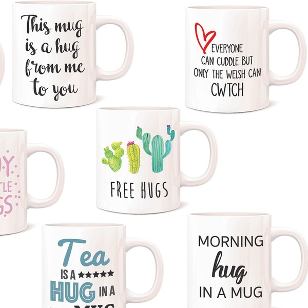 These white mugs are made from 11oz ceramic and feature various prints on the side; ideal as a gift