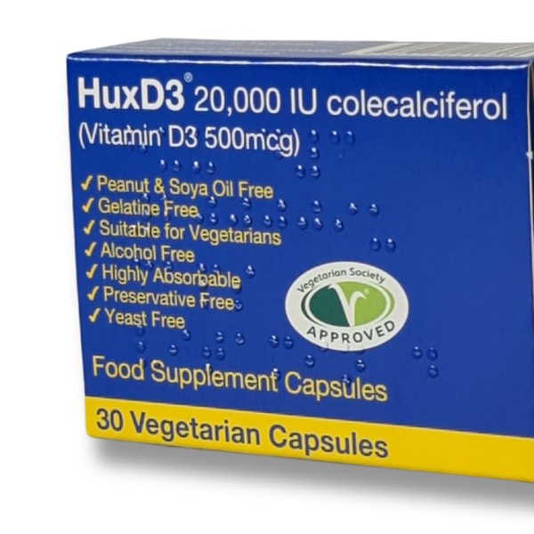 20- or 30-Pack HUX D3 Vitamin D3 (20,000 IU) Colecalifero Capsules