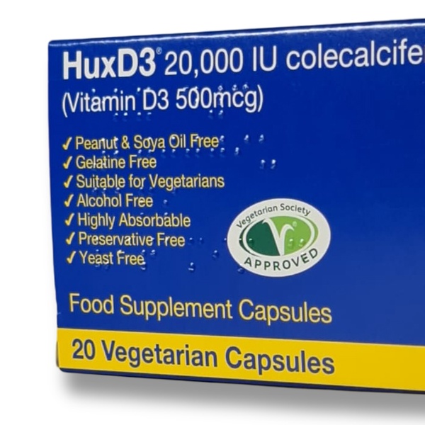• Halal and Kosher certified Vitamin D3 BP (Colecalciferol) 500mcg = 20,000 IU (10,000% NRV).