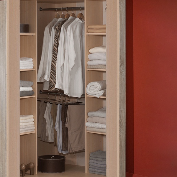 - Two-door corner wardrobe: 199cm (H) x 95cm (L) x 95cm (W)