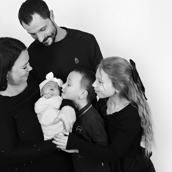 In Studio Family Photoshoot with 1 image printed as 12x8 and matching smalls plus the same image as a 16x12 print