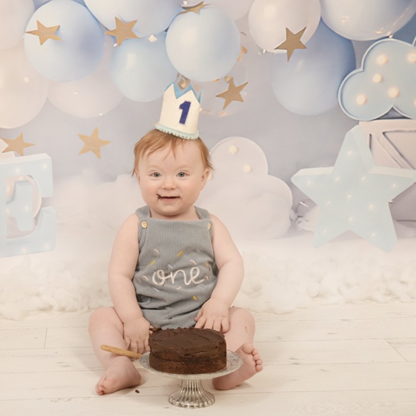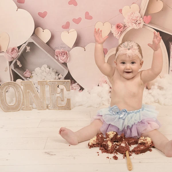 In Studio Cake Smash Photoshoot with 1 image printed as 12x8 and matching smalls