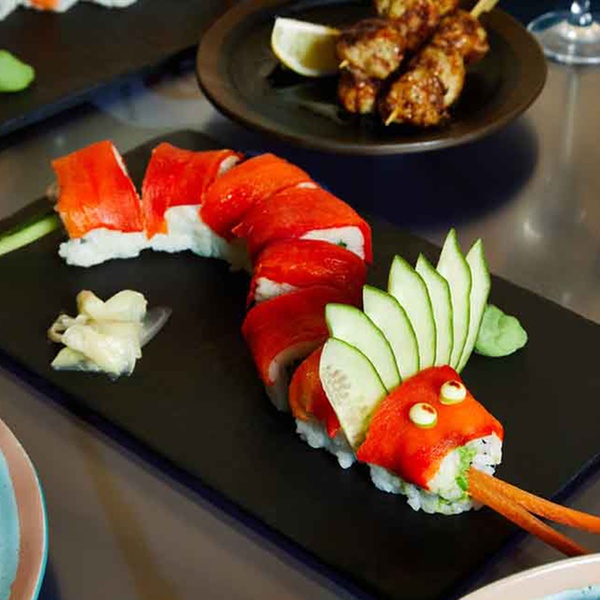 - Indulge in Japanese, Chinese & Thai cuisine, including dishes like Inamo’s signature dish, the Dragon Roll, Crunchy tempura shrimp, creamy avocado, and a touch of mayo