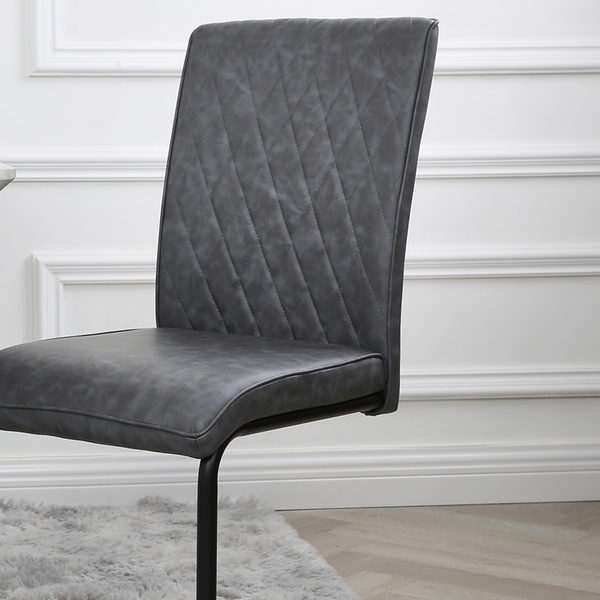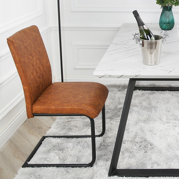 Featuring a leather backrest and a metal chrome framing, this dining chair can complement a dining room decor and add a luxurious touch