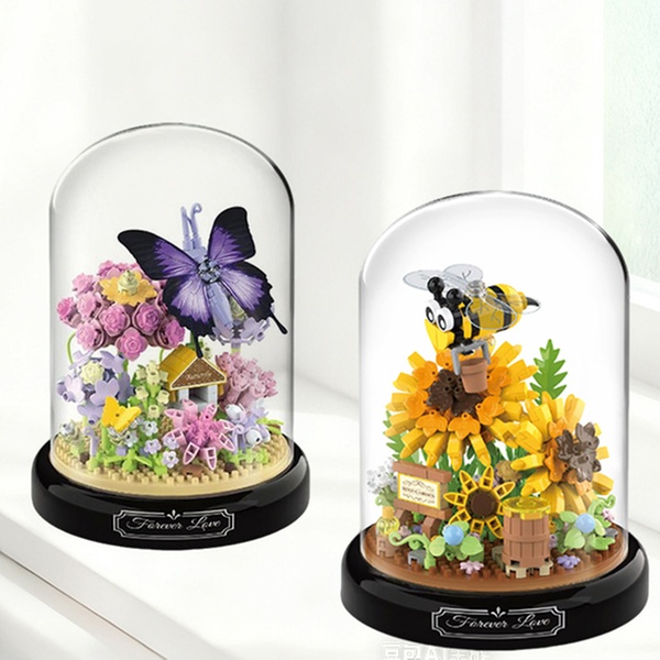 - Creative insect and plant-themed building block set featuring a bee or butterfly on a blooming plant