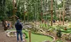 The high ropes aerial assault course and zip wire is a 6 metre high assault course situated above our 18 hole adventure golf course. Take advantage of our beautiful woodland and stunning bluebells whilst tackling the course. Obstacles include wingy steps, see-saw steps and various wobbly bridges and finishes with a 41 metre zip wire. Minimum height requirement: 1.2 metres. Anyone aged under 8 years must be accompanied by a paying adult participant.
