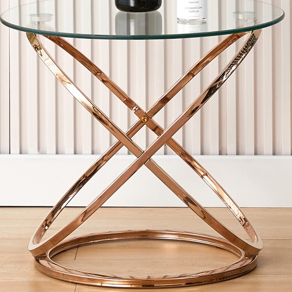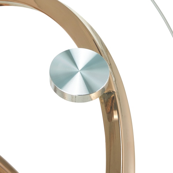 This lamp table boasts a sleek glass top and elegant gold base, making it a stunning accent for any contemporary space