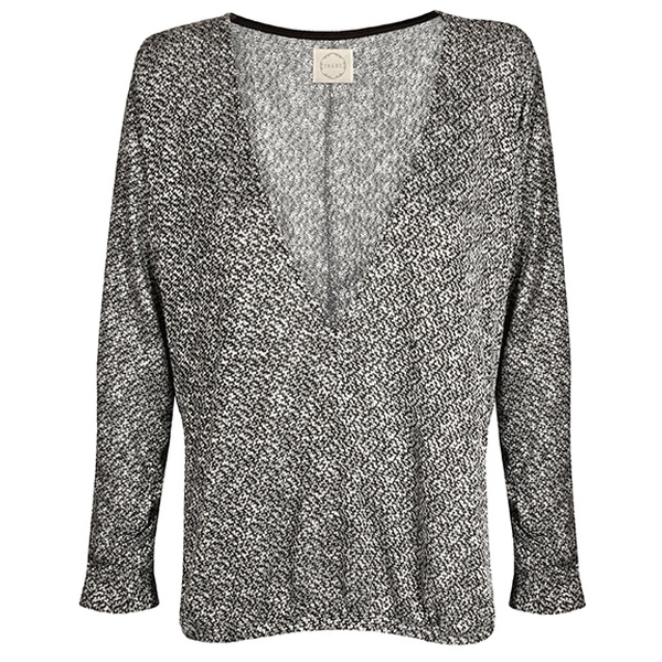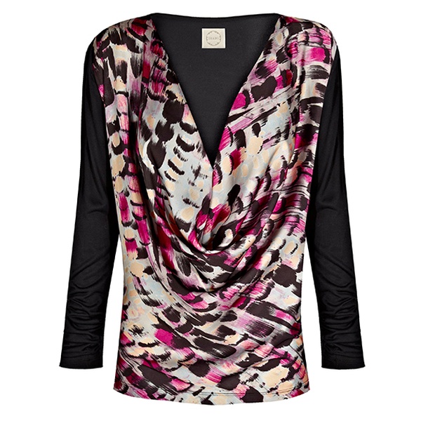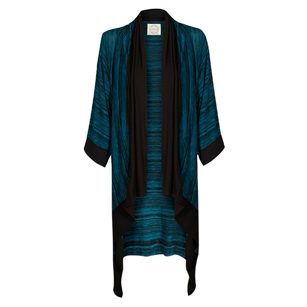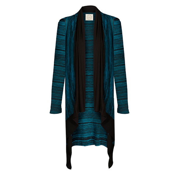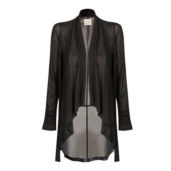 - Waterfall cardigan with black jersey trim, in a soft medium weight knit