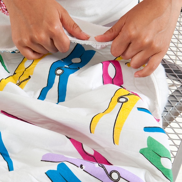 Designed to facilitate ironing, this cover features a thick underlay which reflects heat to allow ironing both sides at the same time