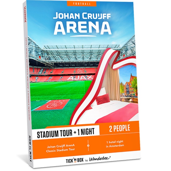 ✦ This gift set includes 2 entries (adult or child) for Johan Cruyff Arena Tour and a one-night stay at a hotel of your preference in Amsterdam. ✦ It is valid for 24 months from the date of purchase. ✦ After placing your order, please feel free to contact the Tick'n'Box via email at serviceclient@tickandbox.net or visit the support page.