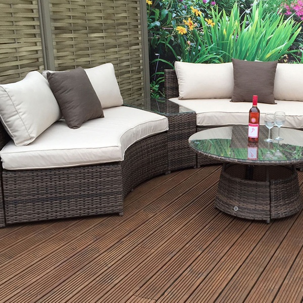 Combining style with comfort, this weather-proof half-moon sofa set is suitable for six adults; ideal for garden parties