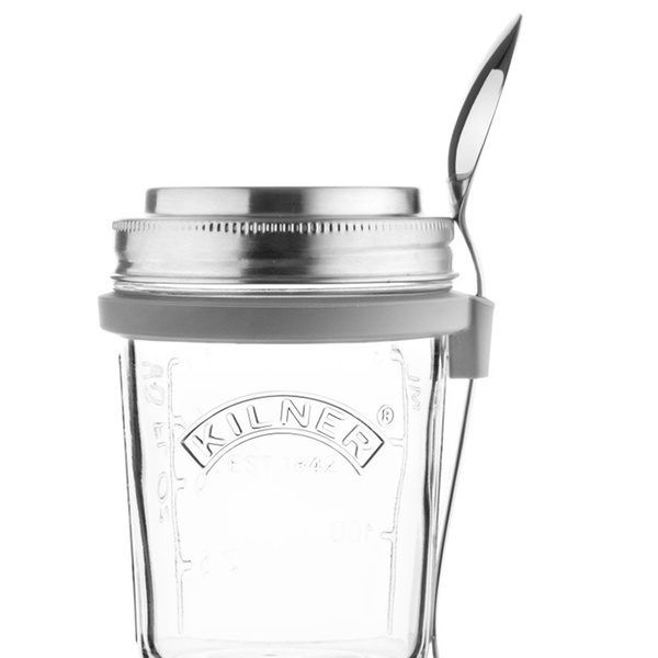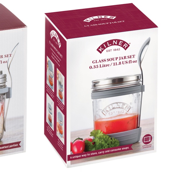 - Jar which comes with a silicone band to hold the Viners stainless steel soup spoon