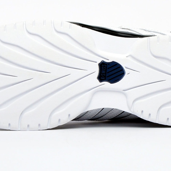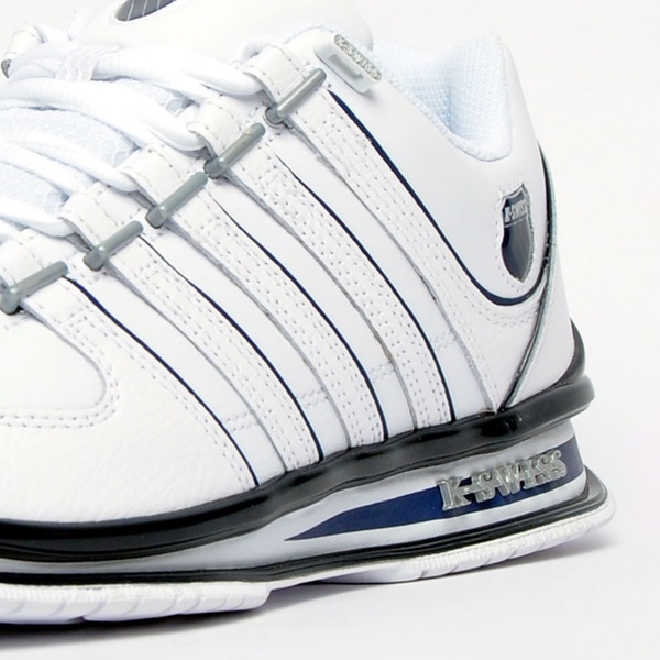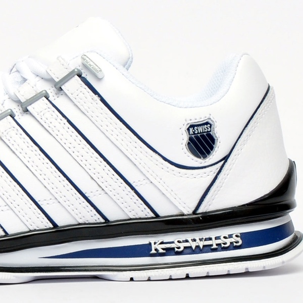 Step out in style with the K Swiss Rinzler, a vintage-themed trainer featuring a high-quality white leather upper and iconic K Swiss branding