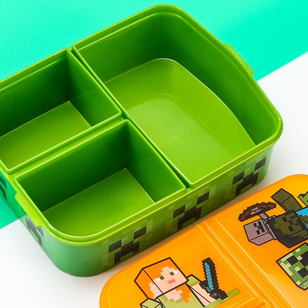 Featuring flip-up compartments and a safety lock, this colourful lunch box was designed for children to carry their lunch or snacks