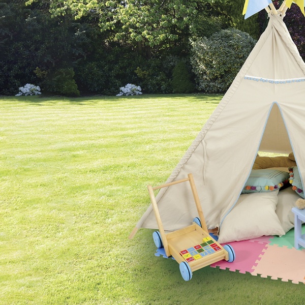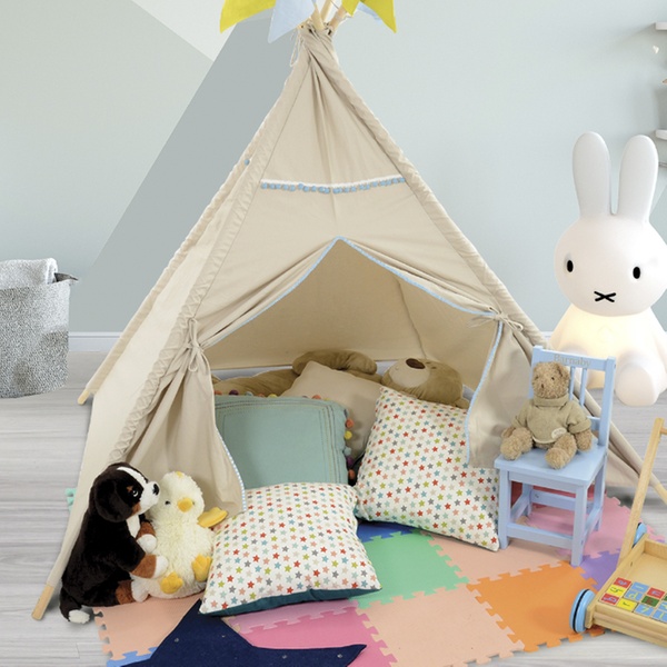 This cotton teepee tent, designed for both indoor and outdoor use, can be an ideal creative play environment for kids