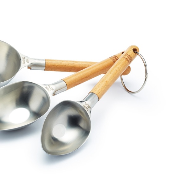 - Capacities: 1 tbsp., 1 dstsp., 1 tsp., ½ tsp., ¼ tsp., a pinch