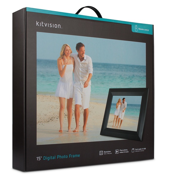 - Plug and play 15” photo frame