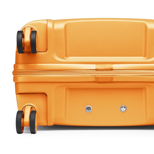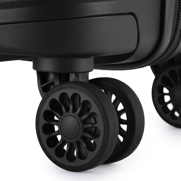 Featuring 360° swivel wheels, this hard-shell suitcase glides effortlessly through busy terminals, making travel a breeze