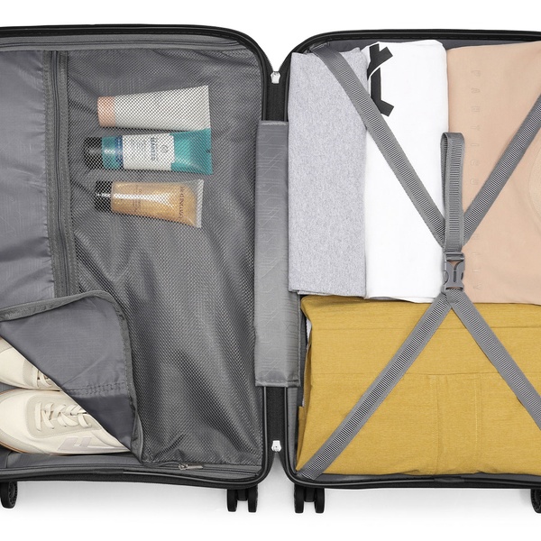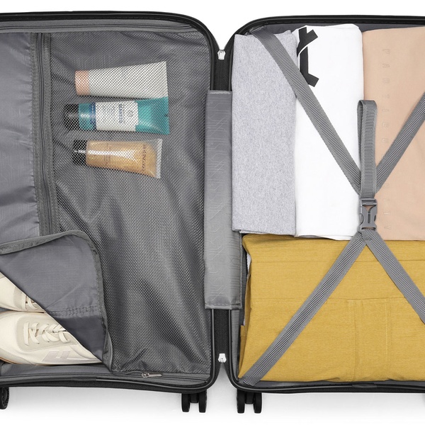 • Organisation: main compartment with nylon straps and a zippered mesh pocket for organised packing