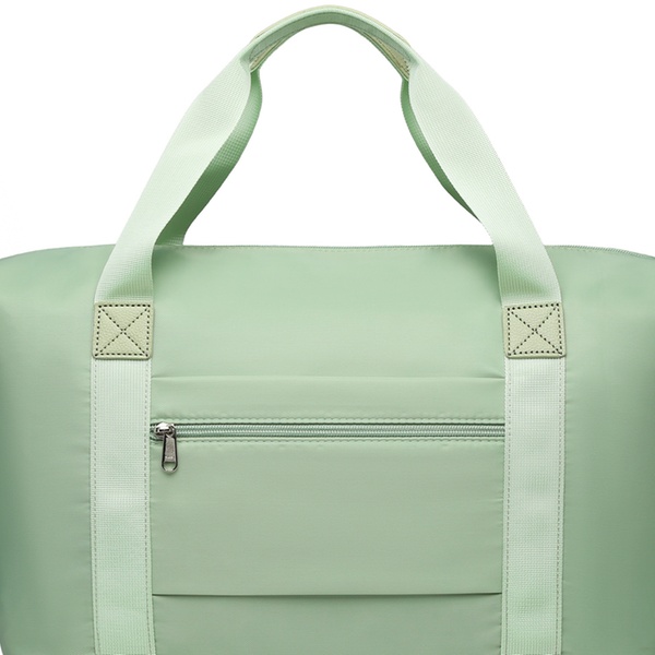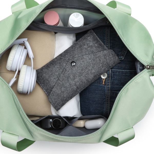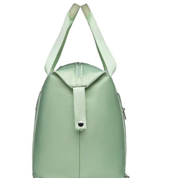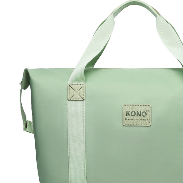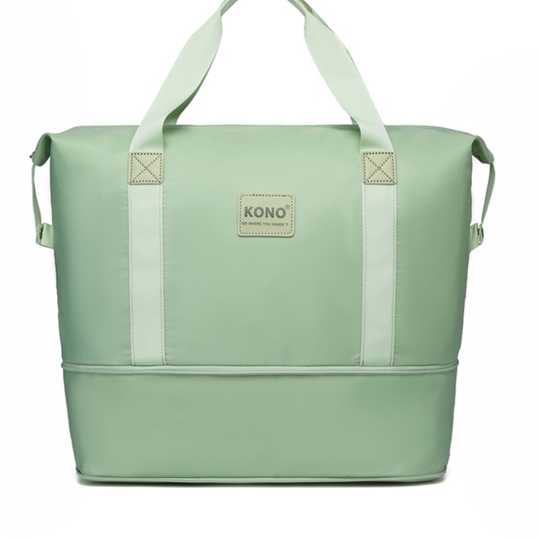 - Tote bag made from waterproof nylon with expandable capacity, wet/dry compartments, and a wide shoulder strap for comfort