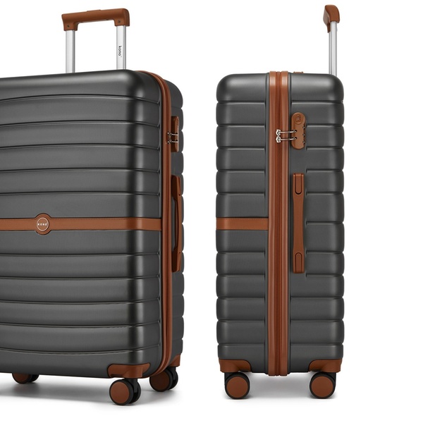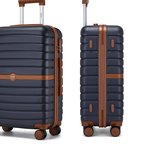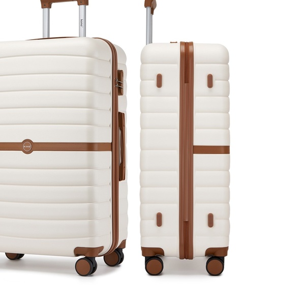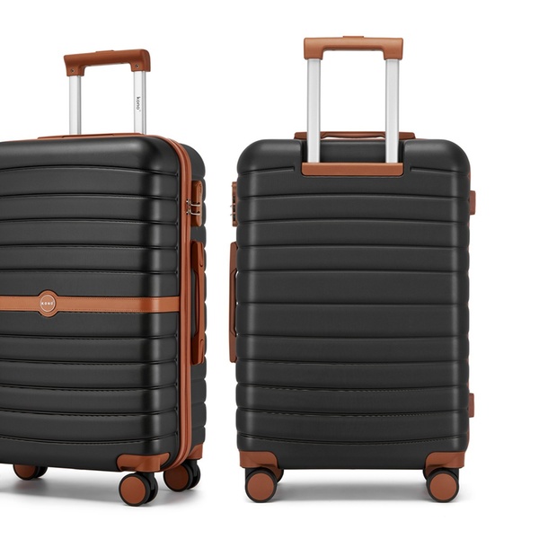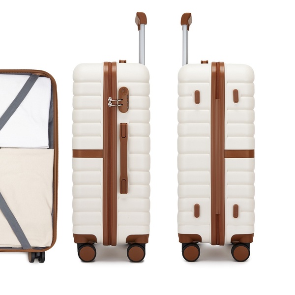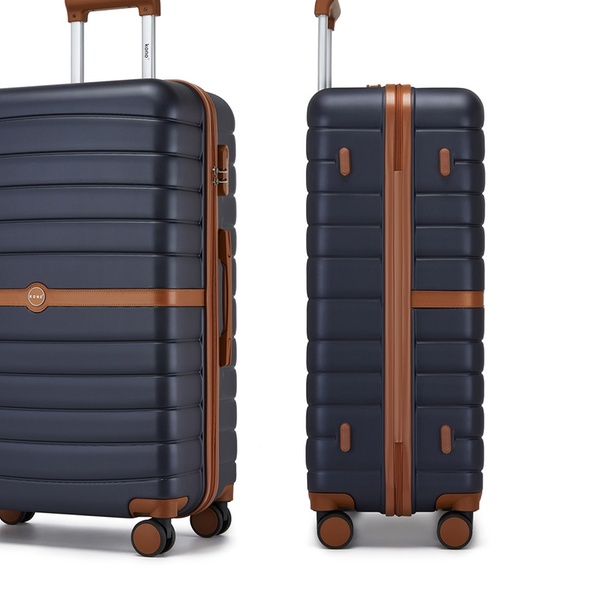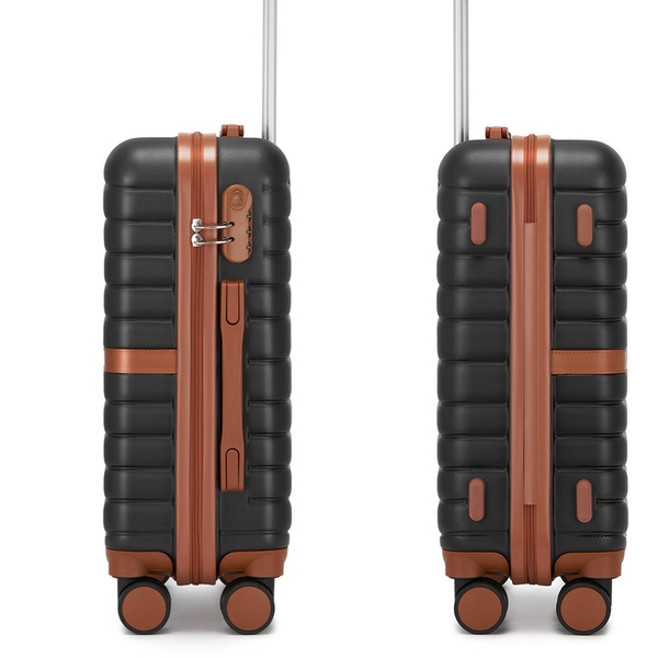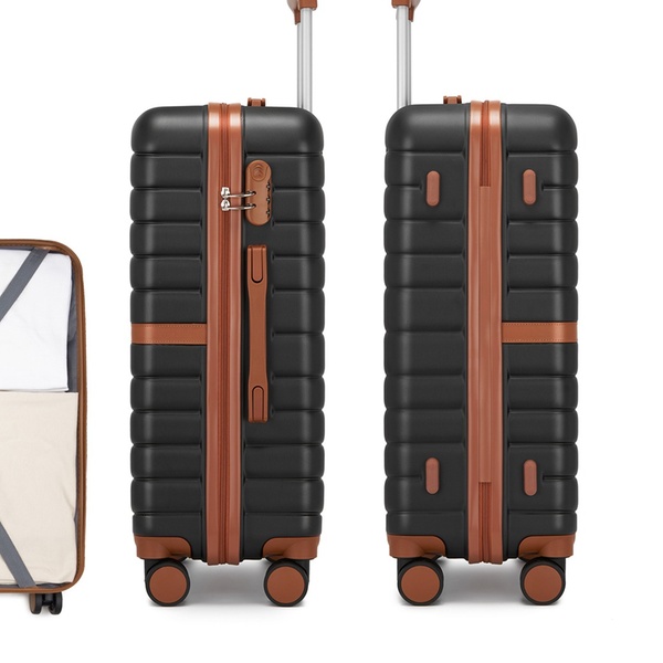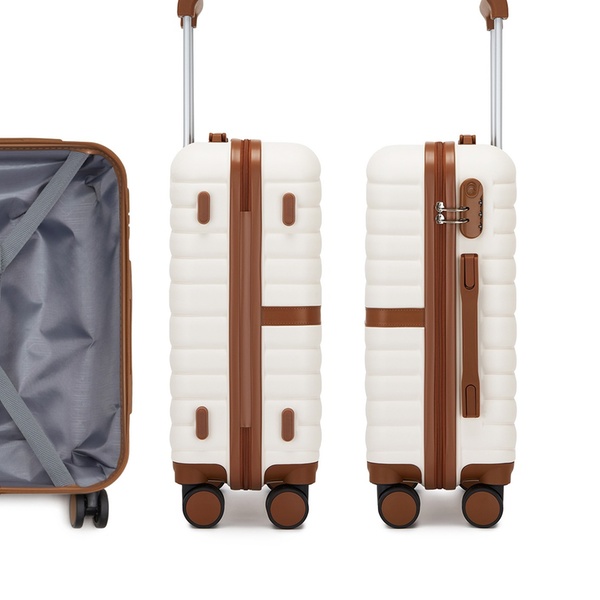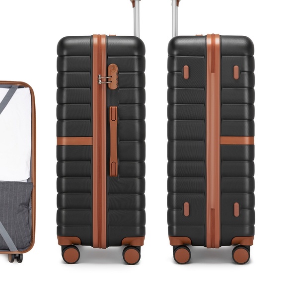 Durable, lightweight ABS+PC shell with stylish stripe design. Smooth 360° spinner wheels, adjustable handle, and built-in 3-digit lock ensure easy, secure travel. Dual compartments offer organized packing, while top/side handles and side feet add convenience.