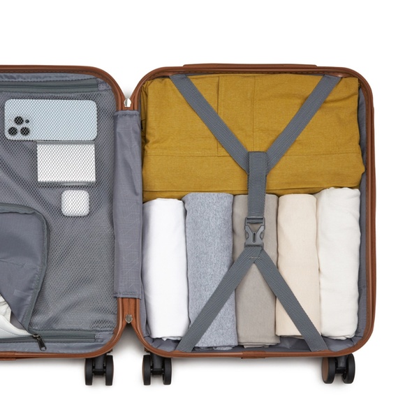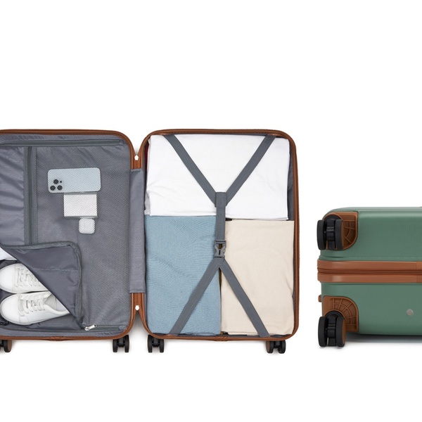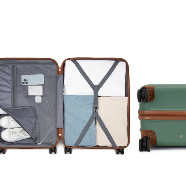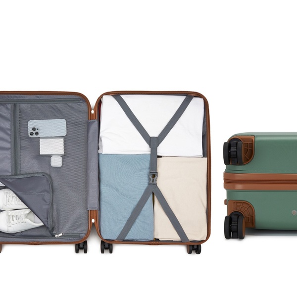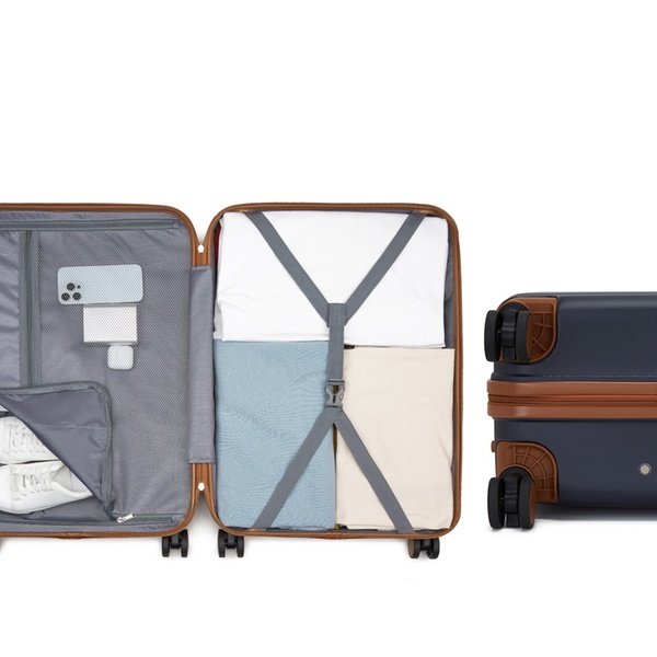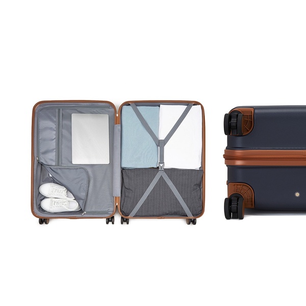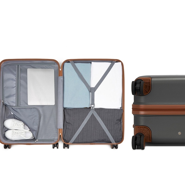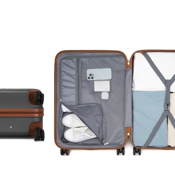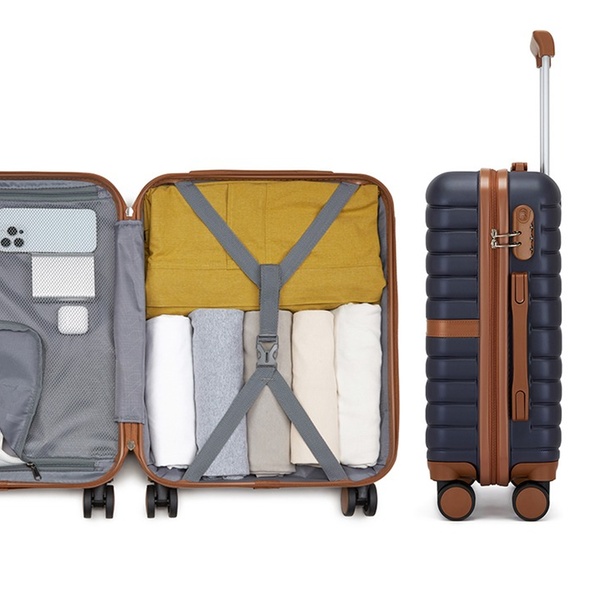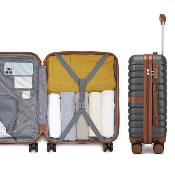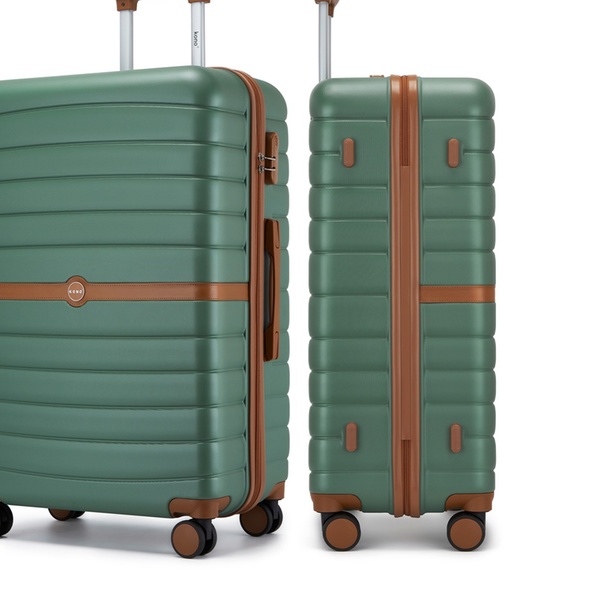 Durable, lightweight ABS+PC shell with stylish stripe design. Smooth 360° spinner wheels, adjustable handle, and built-in 3-digit lock ensure easy, secure travel. Dual compartments offer organized packing, while top/side handles and side feet add convenience.