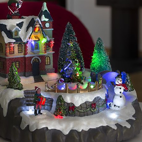 Decorate a windowsill, sideboard or mantelpiece for Christmas with this festive scene illuminated by eight coloured LEDs