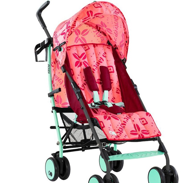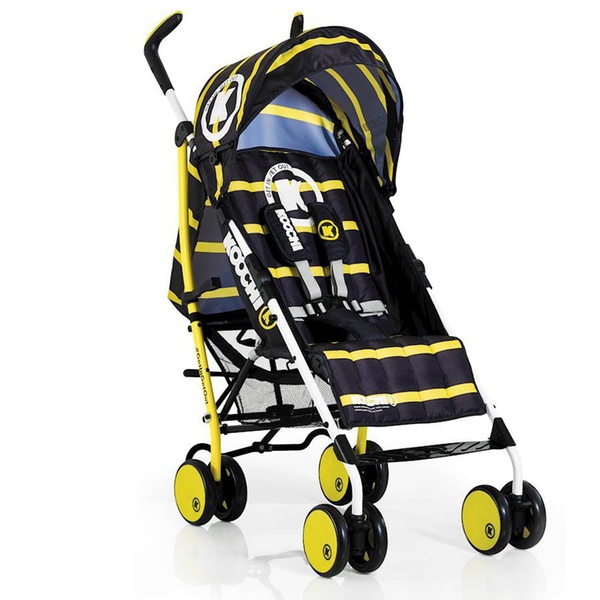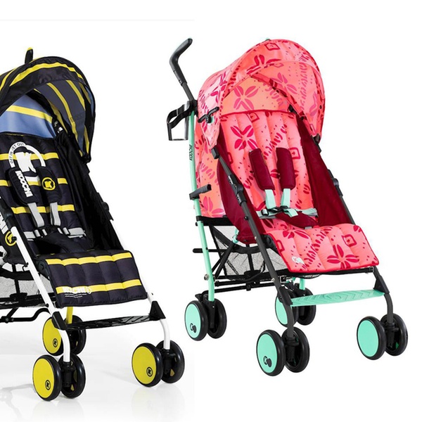 These strollers feature front and rear suspension, lockable swivel front wheels and spacious shopping basket