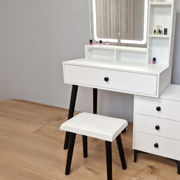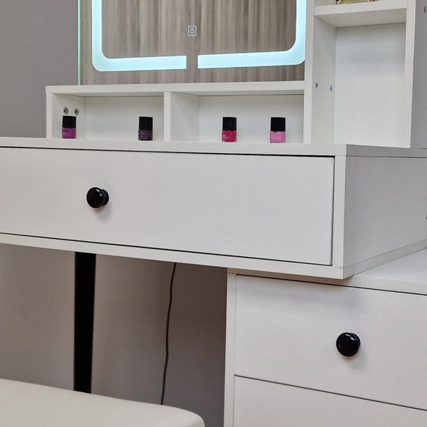 - Multiple shelves for organising cosmetics, magazines, and jewellery