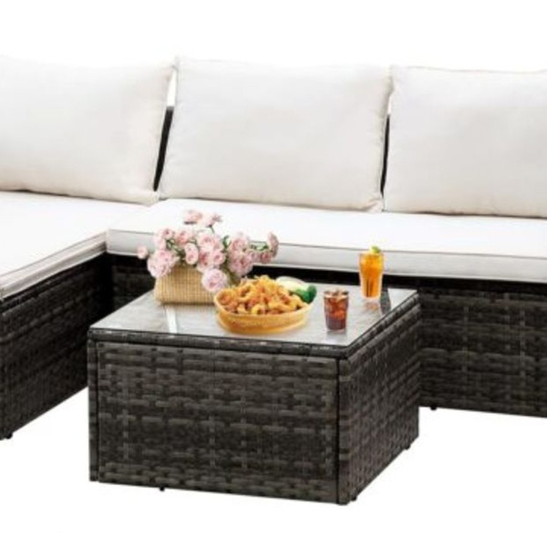Today's Groupon offers L-Shape Three-Piece Rattan Garden Furniture Set, distributed by Mesolab Services Ltd.