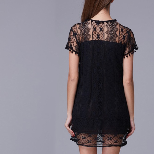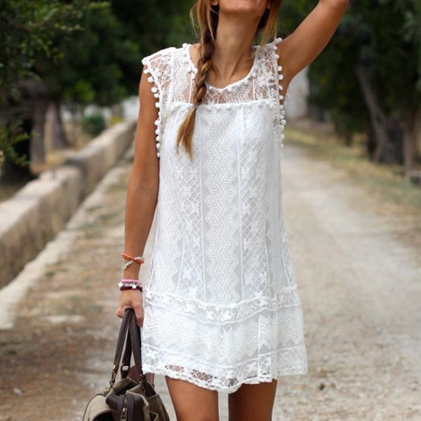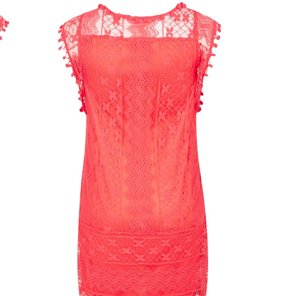 Lined sleeveless lace dress designed for hot summer days; available in four colours to choose from
