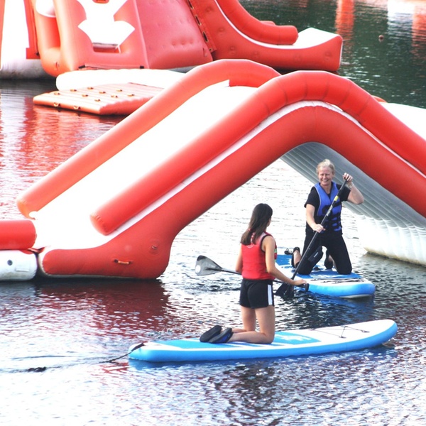 Stand-up paddleboarding (SUP) is one of the fastest-growing water sports, known for being both low-impact and highly enjoyable. It offers a great core workout, improves balance, and gets you moving—all while you cruise peacefully across open water. Lagoona Park takes it to the next level with a world-first paddleboard route that flows through their Aqua Park, adding extra challenge and excitement to your session. This one-of-a-kind feature makes it ideal for beginners looking to build confidence or for families seeking an active, unique day out. With professional supervision, optional wetsuit hire, and a welcoming lakeside setting, this is the perfect way to embrace the outdoors and try something new—no experience needed.