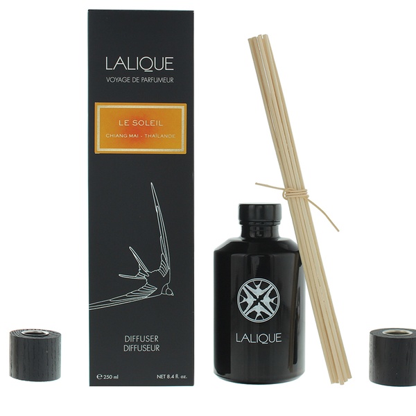 Elevate home with Lalique’s luxurious 250ml diffusers, combining exquisite fragrances with iconic crystal craftsmanship. Vetiver Bali Indonesie brings calming, earthy vetiver notes grounded with cedar and pine, while Le Soleil Chiang Mai offers a vibrant, multi-layered floral, fruity aroma.