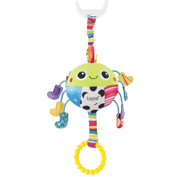 - A quick-release clip makes it easy to attach to cot sides and on to pushchairs for ‘on-the-go’ play