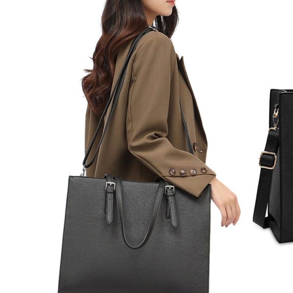Crafted from PU leather, this laptop tote bag combines sophistication with a spacious design to keep essentials organized on the go.