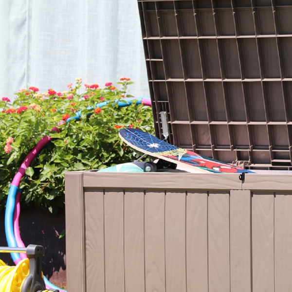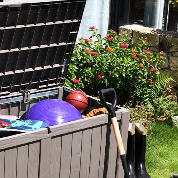 With a spacious storage capacity of 450l and secure lids, this large plastic storage bin is ideal for keeping most items safe and organized