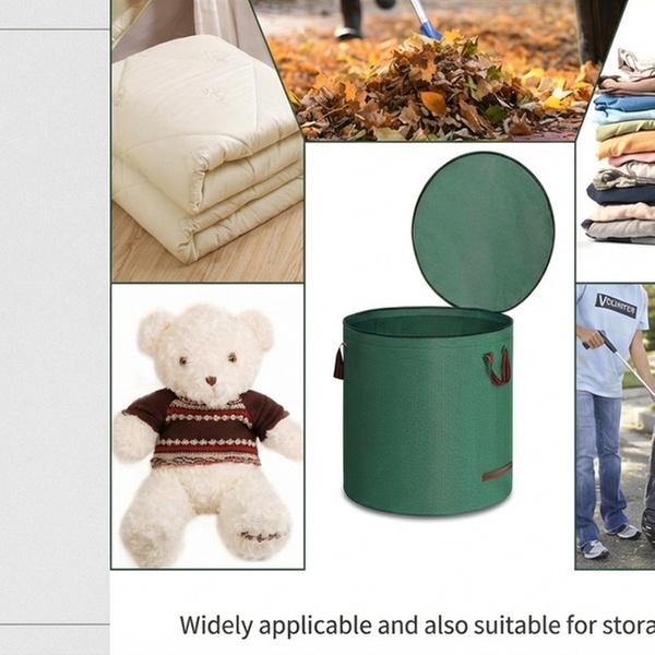 A versatile, durable PP fabric storage bag with double handles and reinforced frame, ideal for gardening or indoor/outdoor storage of clothes, bedding, and sundries
