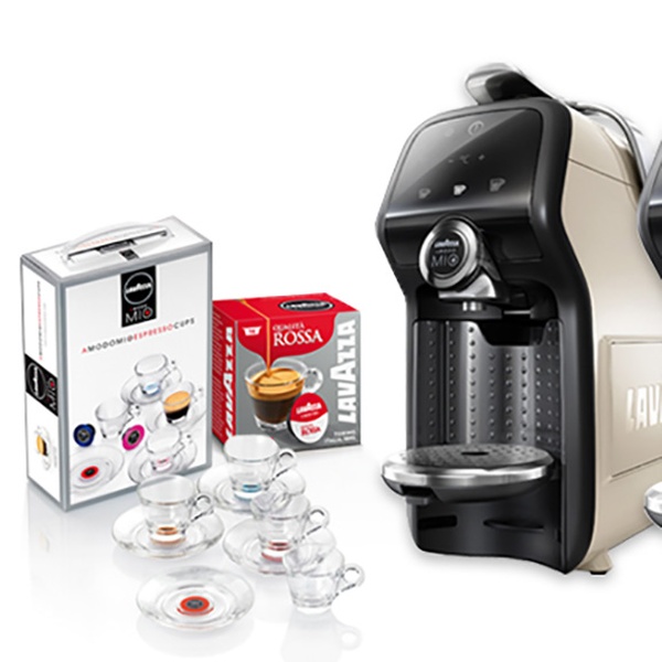 Start the day right with a freshly-brewed coffee served in one of glass cups that come with this Lavazza coffee machine