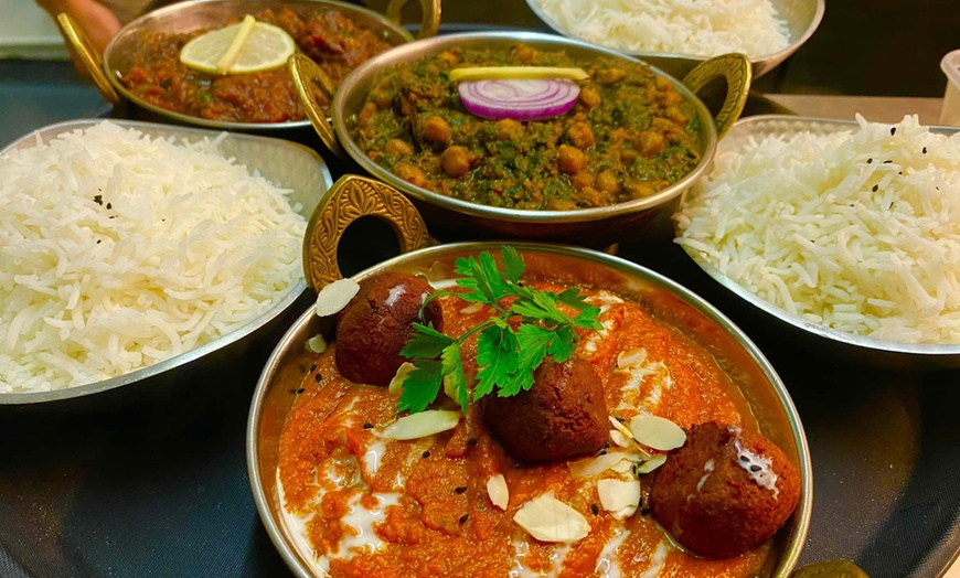 - For 1, 2, or 4: Chutney Tray or Papadam, Starter, Main, Rice or Naan, Dessert & Soft Drink