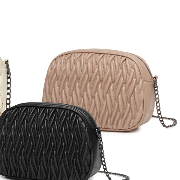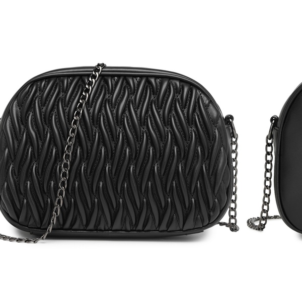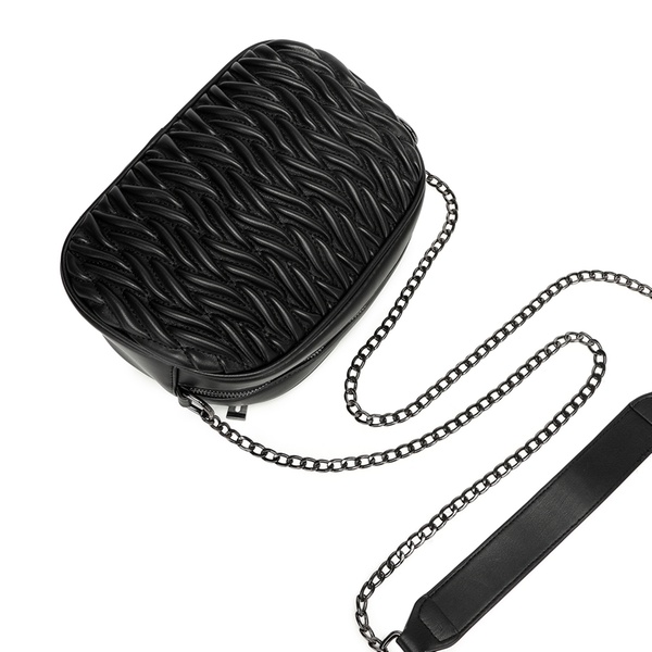 • Long shoulder strap combines chain and PU strap for comfortable cross-body wear.