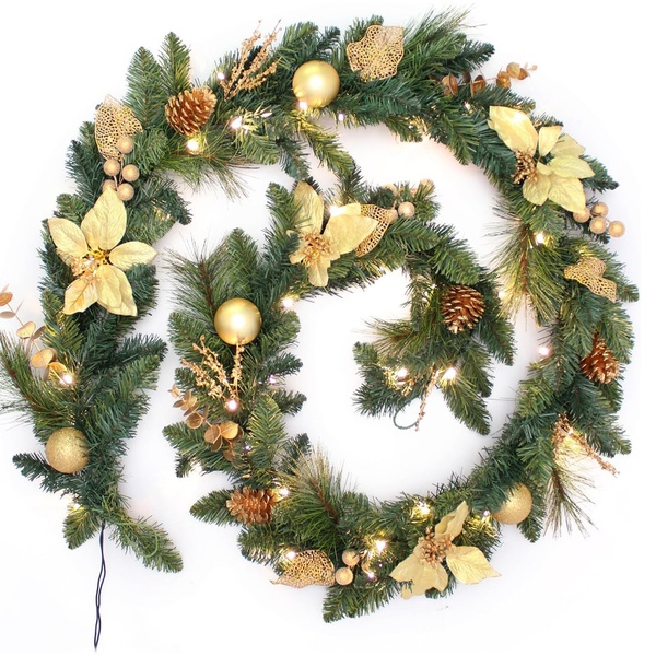 9ft Christmas Garland with Lights