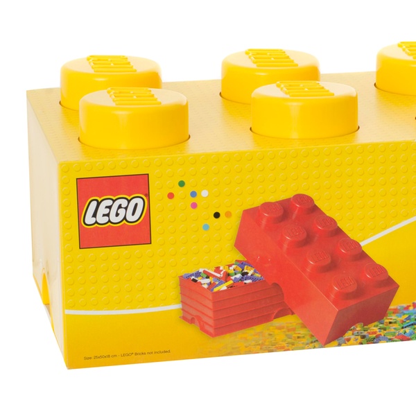 - Eight-stud bricks available in red, yellow, pink, green, blue, light blue or black