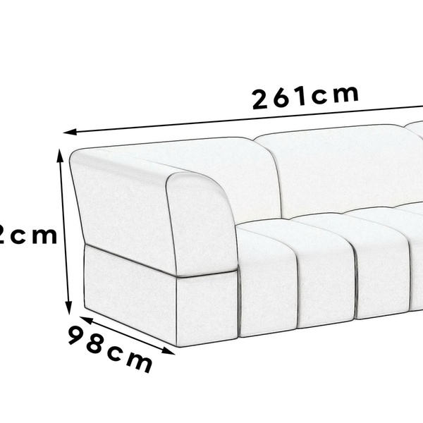 - Dimensions: Width 257cm x Depth: 104cm x Height: 72cm