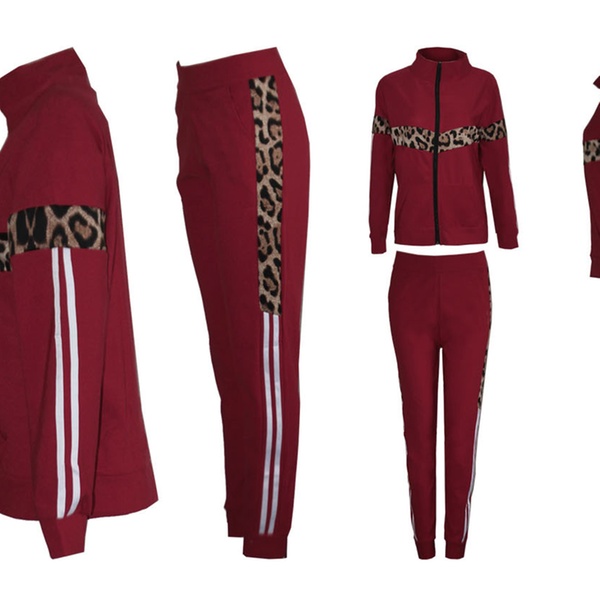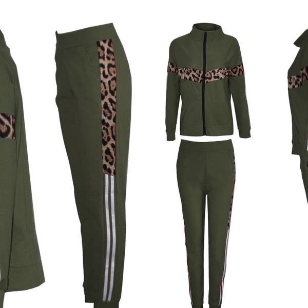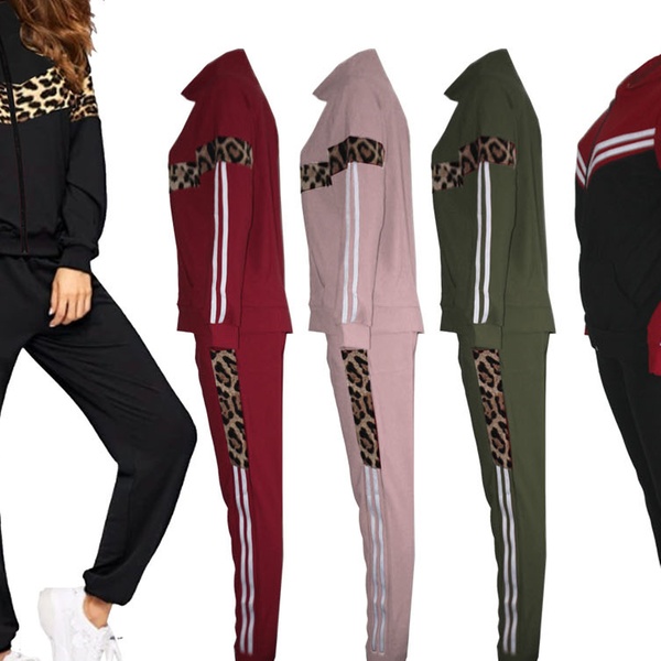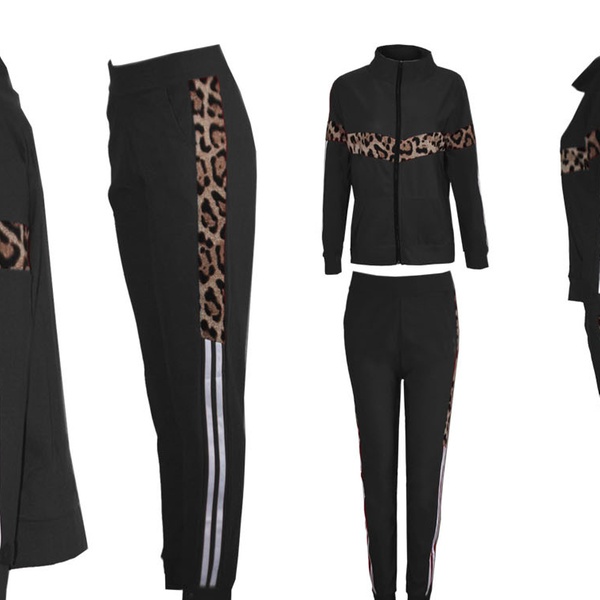 - Leopard panel style features a long-sleeved zipped jacket with leopard detail and leggings with side stripes and leopard detail